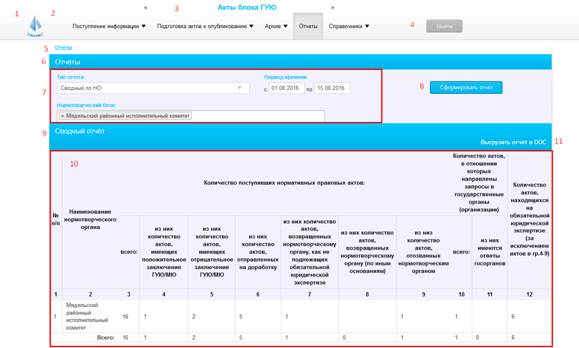 11) кнопка «Выгрузить отчет в DOC» – при нажатии на данную кнопку осуществляется сохранение файла отчета в формате. doc.