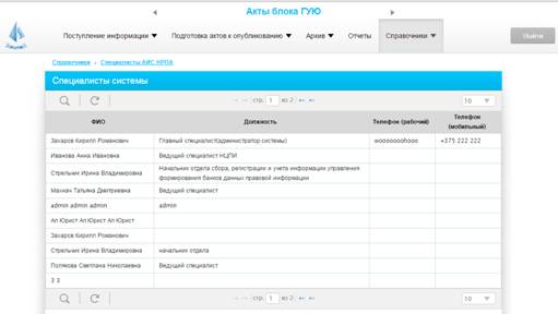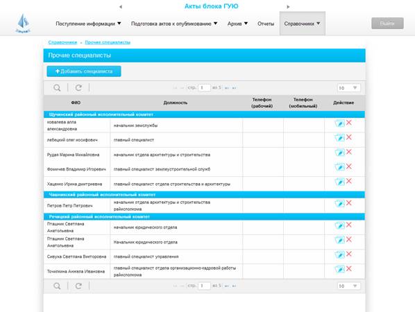 Рисунок 34 – Страница «Специалисты АИС НРПА»