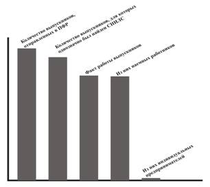 На семинаре, проводимом НИУ «Высшая школа экономики» летом 2015 г., представителем Минобрнауки были озвучены итоговые результаты трудоустройства выпускников 2014 г. по направлениям подготовки и специальностям. Половина не трудоустроенных выпускников, по данным Пенсионного фонда, приходится на экономические и юридические специальности. Что касается выпускников технических направлений, то их доля составляет около 10%.