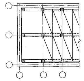 Конструктивная система с плоскими пилонами, представляет собой промежуточный между стеновой и каркасной схемой вариант конструктивного решения, в которой колонны заменены плоскими участками стен, развитыми в длину