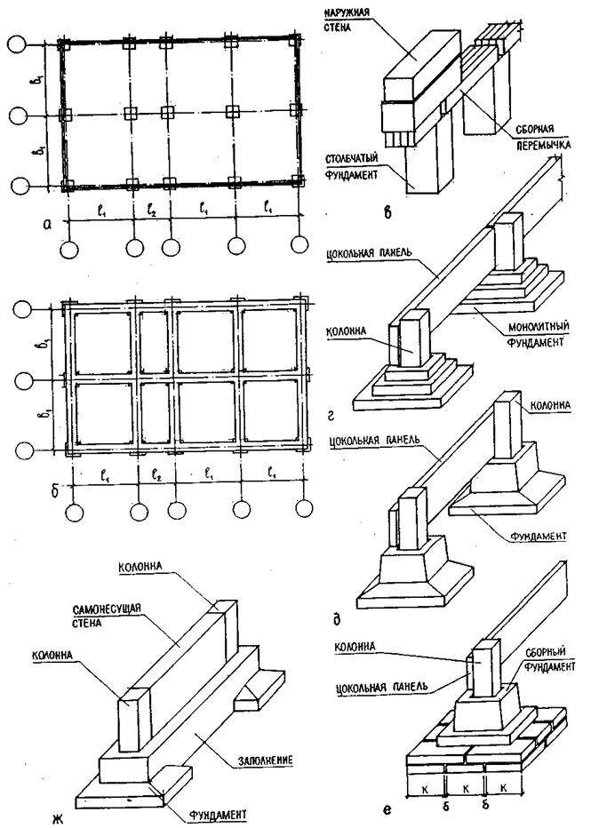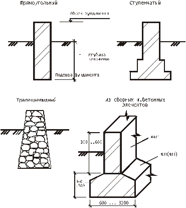 - столбчатые, в виде отдельных опор под колонны, а также под стенами малоэтажных бесподвальных зданий,