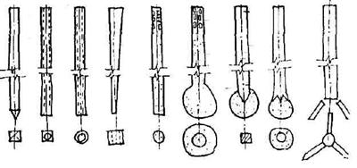 По форме сечения сваи бывают круглыми (диаметр 400 – 700 мм), квадратные (250*250 – 400*400мм), прямоугольными, ромбовидными, трубчатыми, трехветвевыми.