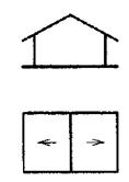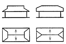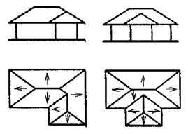 Формы крыш: односкатная, двускатная (щипцовая), четырехскатная (вальмовая) полувальмовая (или щипцовая) – показать на рисунке.