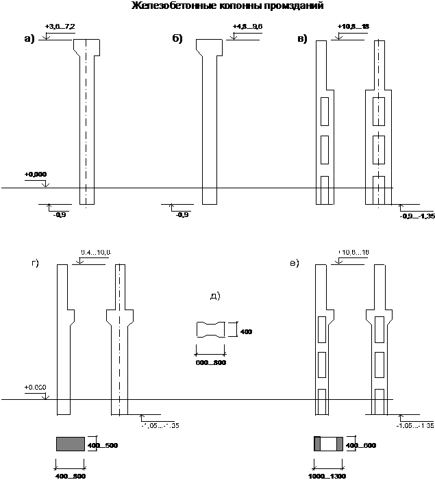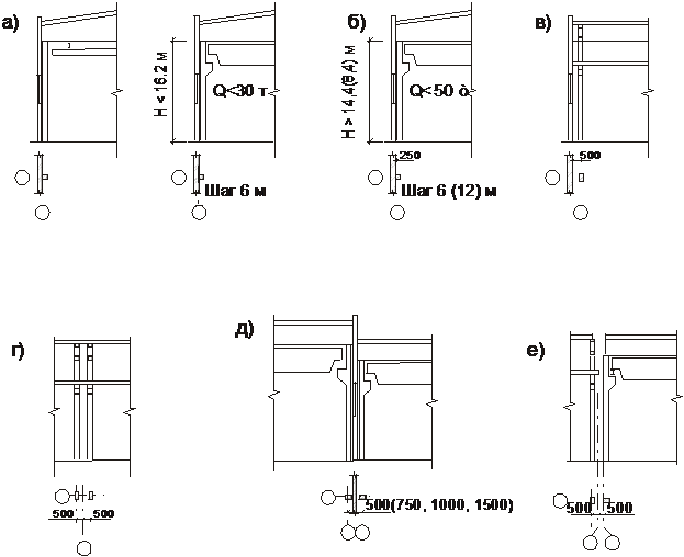 д) двутаврового сечения для зданий с мостовыми кранами, при шаге колонн 6 и 12 м;