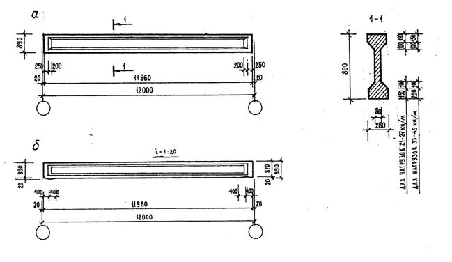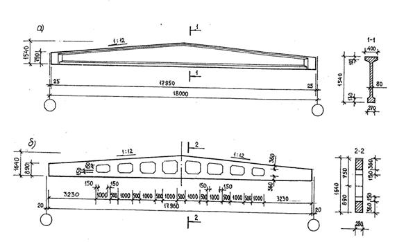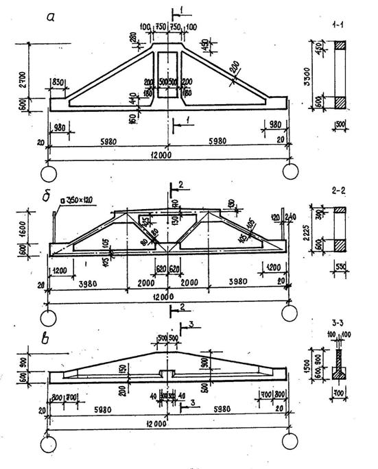 б) прямоугольного сечения для зданий без мостовых кранов, при шаге колонн 12 м;