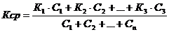 Кср - средний коэффициент нарастания затрат в производстве, определяется на основе данных коэффициентов нарастания затрат по отдельным видам или группам выпускаемой продукции (К1, К2, .... Кп) и плановой производственной себестоимости находящихся в производстве отдельных видов или групп выпускаемой продукции (С1, С2, …, Сn) по формуле: