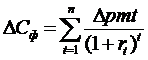 | – | приращение платежа по кредиту в году t, ден. ед.; | |