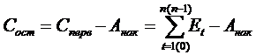 Определение методом учета начальных затрат остаточной стоимости осуществляется по формуле: