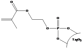 Нанонаполнители на основе двуокиси кремния не обладали рентгеноконтрастностью, как требует ISO 4049. Поэтому в состав композитов стали вводить наночастицы соединений редкоземельных металлов, например, фторид иттербия [38]. Рентгеноконтрастные наночастицы оксидов металлов синтезировали также пре-гидролизом этоксида тантала или пропоксида циркония в воде, с последующей переэтерификацией муравьиной кислотой [39]. Силанизированные наночастицы вводили в полимерную матрицу с получением прозрачного композита. Однако модификация не силикатных наночастиц метакрилированными силанами была менее эффективна. После отверждения нанонаполненного композита, его механические свойства оказались ниже, чем у не наполненной смолы. В связи с этим было предложено модифицировать наночастицы оксида тантала фосфатметакрилатом (рис. 38).