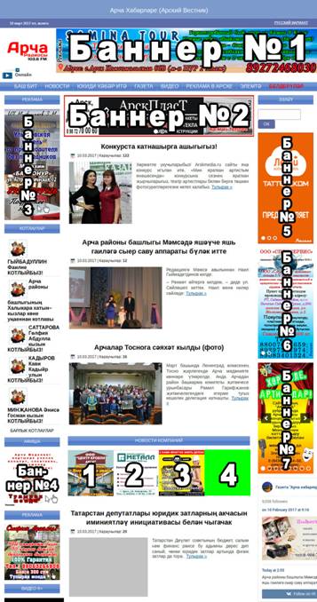 ПРАЙС–ЛИСТ НА РАЗМЕЩЕНИЕ РЕКЛАМЫ, ОБЪЯВЛЕНИЙ, ИНФОРМАЦИОННЫХ МАТЕРИАЛОВ, СОЦИАЛЬНОЙ РЕКЛАМЫ НА САЙТЕ ФИЛИАЛА АО «ТАТМЕДИА» arskmedia.ru И ПРЕДСТАВИТЕЛЬСТВАХ В СОЦИАЛЬНЫХ СЕТЯХ
