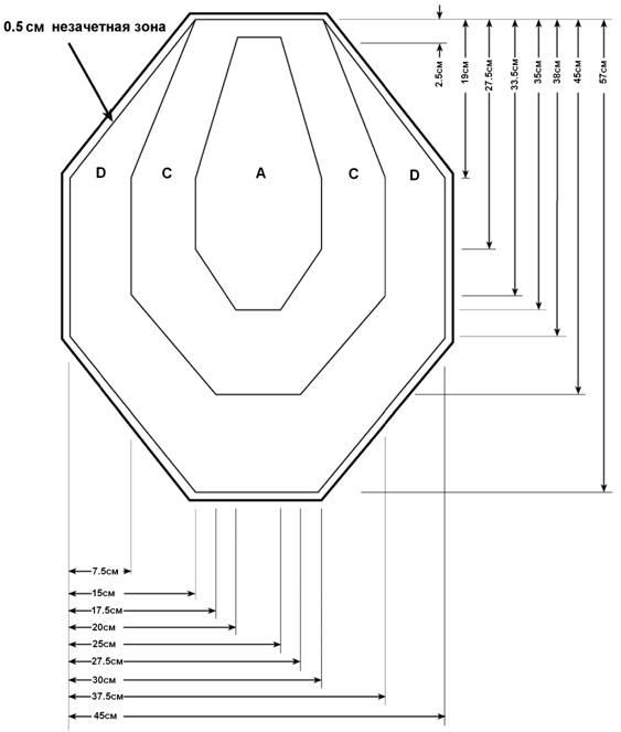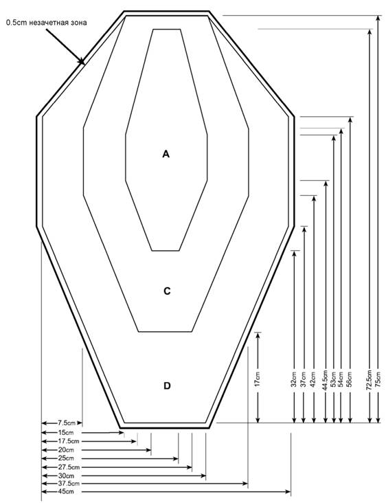 ДЛЯ РУЖЬЯ: До начала соревнования Главный Судья должен убедиться, что любые зачетные картонные или бьющиеся мишени, расположенные в непосредственной близости от штрафной мишени, можно поразить без получения штрафа, учитывая радиус рассеивания (дробь и картечь). Он определяет, какие из этих мишеней необходимо протестировать.