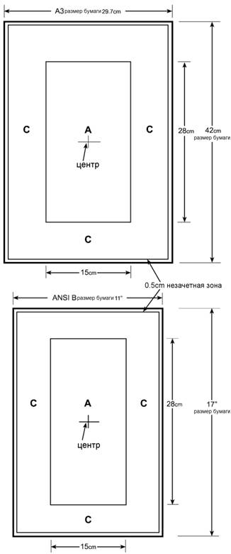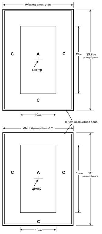 Центр зоны А располагается точно по центру используемого картона.