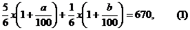 Обозначим через x первоначальную сумму денег. Тогда через а обозначим процент, на который возрастает сумма за год в первом банке, а через b – во втором банке. К концу первого года сумму вклада в I банке стала равной