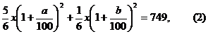 . По условию задачи сумма вкладов в конце первого года составляет 670 у. е., а к концу второго года – 749 у. е., поэтому можно составить два уравнения:
