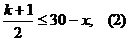 поскольку число учеников, лучше которых учится наихудший из хороших учеников, не превышает 30-x. Правая часть неравенства (1) возрастает с ростом k, а неравенство (2) равносильно условию