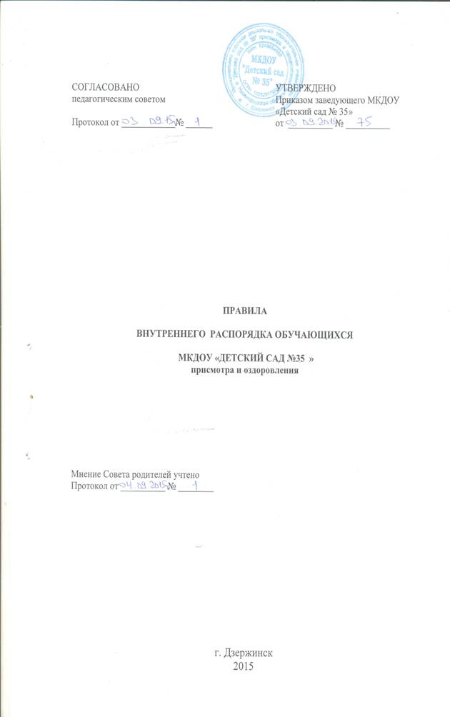 1.1. Правила внутреннего распорядка обучающихся (далее Правила) являются локальным нормативным актом, регламентирующим распорядок жизнедеятельности обучающихся Муниципального казённого дошкольного образовательного учреждения «Детский сад №35 » (далее – Учреждение).