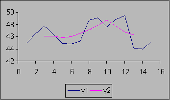 Для того, чтобы сгладить ряд по 5 дням необходимо по каждым последующим 5 дням рассчитать среднюю арифметическую простую, при этом среднее число за первых 5 дней поставить на 3-ю дату, а следующие 5 дней начинать рассчитывать со 2-го числа, а результат ставить на 4-ю дату. Чем больше интервал, за который исчисляется средняя, тем больше сглаженный ряд усредняет фактический ряд, при этом теряется много информации. Чем меньше интервал, тем больше сглаженный ряд приближается к конкретному ряду. По сглаженному ряду, показанному на графике можно выявить тенденцию в развитии.