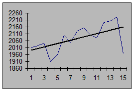 Рис. 9. Аналитическое выравнивание ряда динамики по прямой