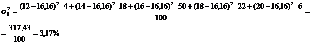 Определить средний % влажности, дисперсию, среднее квадратическое отклонение, с вероятностью 0,954 возможные пределы, в которых ожидается ср. % влажности всей готовой продукции, с вероятность 0,987 возможные пределы удельного веса стандартной продукции при условии, что к нестандартной партии относятся изделия с влажностью до 13 и выше 19 %.