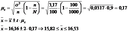 А среднее значение генеральной совокупности находится в пределах :