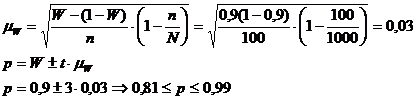 Из расчета задачи видно, что возможные пределы удельного веса единиц генеральной совокупности будут находиться: