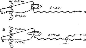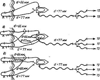 Способ, показанный на рис. 5.26 а, применяют для подачи на тушение одного ствола диаметром 19 или 13 мм.