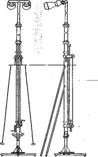 Подъемник-пенослив (рис. 5.39) состоит из опорного ствола с опорными рычагами, телескопического механизма выдвигания, гребенки, двух генераторов пены ГПС-600 и двух шестов для подъема и опускания подъемника.