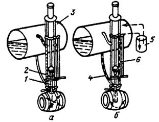 На бочку устанавливают разливочный кран, головка которого плотно прижимается к шпунтовому отверстию бочки. Один из трех отводов этого крана в виде наполнительной трубы 1 отпускают на дно бочки. Посредством второго отвода 2, связанного с верхней частью напорного резервуара, после выравнивания давления в системе (рис.5.18 б) открывают наполнительную трубу, и через соединительный шланг 4 пиво поступает в бочку. По третьему отводу 6 воздух возвращается в напорный резервуар и систематически освобождается от пены. Наполнение бочек не менее 99,5% от объема.