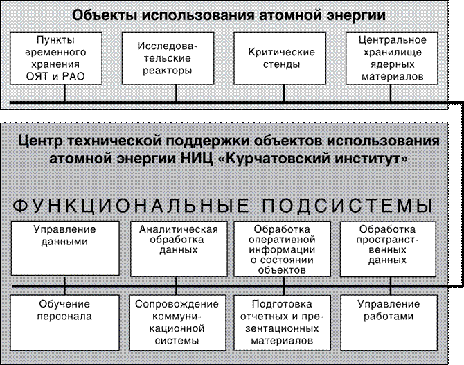 – создание и сопровождение баз данных ОИАЭ, содержащих проектно-конструкторскую документацию, эксплуатационную документацию, данные по текущей эксплуатации, оперативную информацию о состоянии объектов;