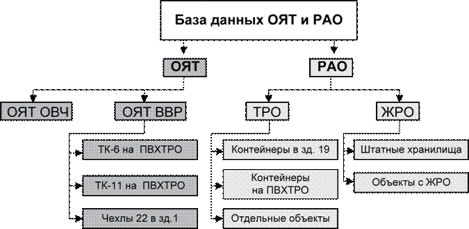 Рис. 8 Структура базы данных по номенклатуре и характеристикам ОЯТ и РАО