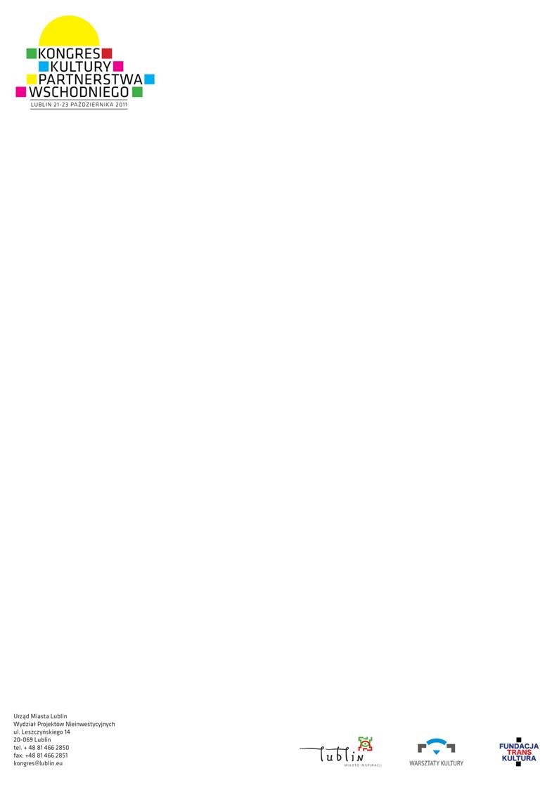 Конгресс культуры Восточного Партнерства, который пройдет в Люблине 21-23 октября 2011 г., организован Городом Люблин и Фондом «Транс Культура» при финансовой поддержке Министерства иностранных дел Республики Польша, в сотрудничестве с Центром культуры в Люблине, Городом Львов, Городом Тбилиси, Польскими институтами в Киеве, Минске и Бухаресте, а также Фондом «Пограничье» в Сейнах.