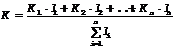 Интегральный показатель (К) оценки состояния инвестиционного климата рассчитывается как средневзвешенная арифметическая величина значений частных показателей: