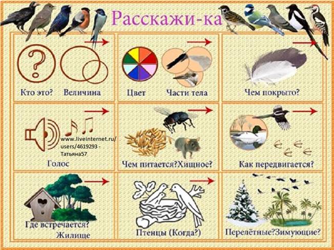Задание 5. Составить описательные рассказы о перелетных птицах (по выбору).