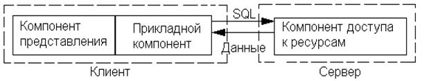 Клиент направляет запрос к информационным ресурсам. Ядро СУБД сервера обрабатывает запросы и возвращает клиенту результат, оформленный как блок данных. Инициатор манипуляций - клиент.