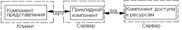 В трехзвенной схеме появляется еще один стандартный интерфейс API.