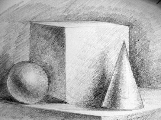 Рис.12. Натюрморт из гипсовых геометрических тел. Карандаш.