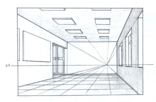 В рисовании интерьера особое значение приобретает метод линейно-конструктивного построения изображения и знание закономерностей перспективы. Линейно-конструктивный метод изображения и линейная перспектива позволяют четко проследить за ходом построения изображения предметов в рисунке. Рисование интерьера по своей сути ничем не отличается от рисования предметных форм.