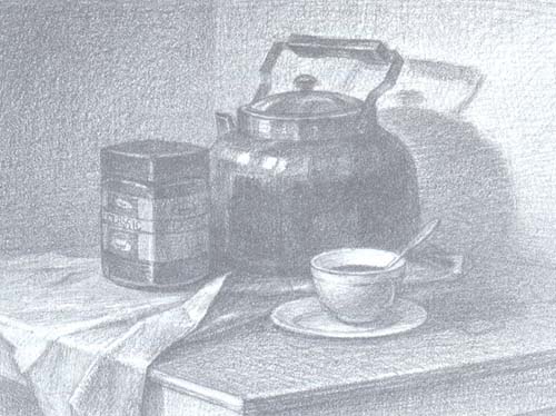 В процессе работы над рисунком натюрморта студенты приобретают специальные практические навыки, развивают глазомер, учатся воспринимать пропорции, улавливать тончайшие светотональные градации и вырабатывают необходимое качество для рисовальщика - способность видеть предметы цельно. В натюрморте необходимо передать сложные разнохарактерные формы предметов или объектов, имеющих различную окраску и фактуру материала (стекло, керамика, гипс, металл, бумага, цветы, фрукты). Размеры предметов должны отличаться друг от друга, а их количество не должно превышать трех-четырех. При этом следует избегать чрезмерной разницы в размерах. Светлые и темные предметы, с учетом их цветовых сочетаний, должны быть сопоставлены контрастно. Это подчеркивает особенности каждой формы - материальность, фактуру, размеры и разнообразие оттенков, что придает выразительность постановке и во многом облегчает решение поставленной задачи.