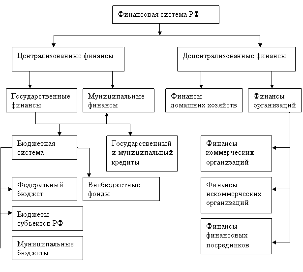 В зависимости от методов формирования доходов экономических субъектов финансовую систему принято подразделять на сферы централизованных финансов (публичные финансы) и децентрализованных финансов (финансы организаций и финансы домохозяйств).
