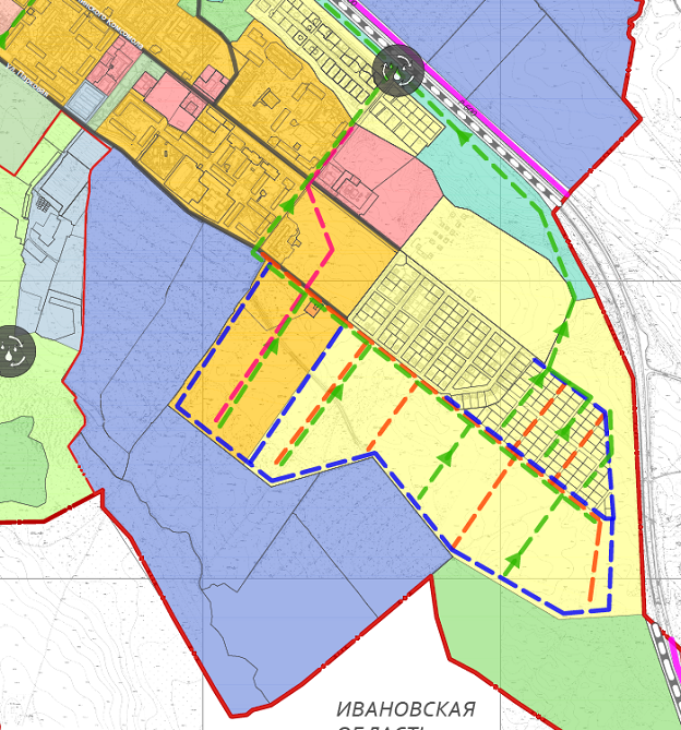Кадастровый квартал 44:32:0202019. Квартал разделен на 3 основных части и предусмотрен для строительства жилых домов (долгосрочная перспектива - 25 и более лет).