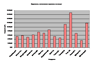 5. По данным таблицы «Зарплата август» постройте гистограмму доходов сотрудников. В качестве подписей оси X выберите фамилии сотрудников. Проведите форматирование диаграммы. Конечный вид гистограммы приведен на рис. 3.2.