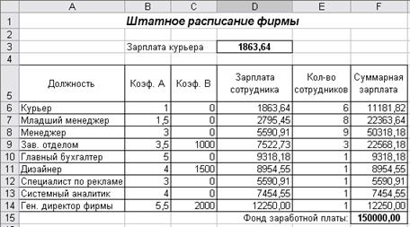Решение задачи приведено на рис. 5.5. Оно тривиально: чем меньше сотрудников и чем меньше их оклад, тем меньше месячный фонд заработной платы.