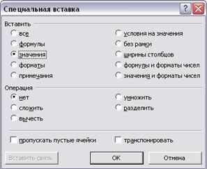 Специальная вставка информации в виде значений позволяет копировать значения, полученные в результате расчетов, без дальнейшей их зависимости от пересчета формул.