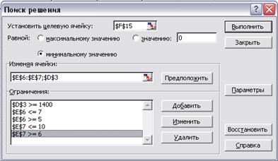 рис. 5.1. Задание условий для минимизации фонда заработной платы