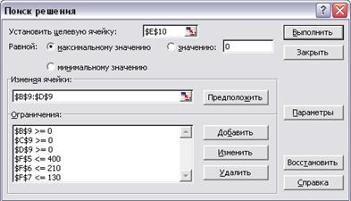 Окончательный вид окна Поиск решения приведен на рис. 5.1.
