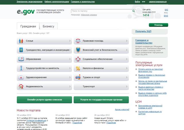 При желании можно перейти на русский/английский языковой интерфейс Портала (по умолчанию казахский).