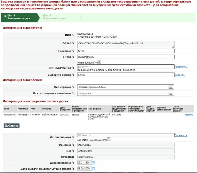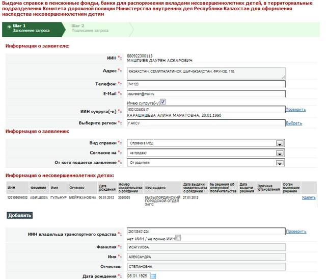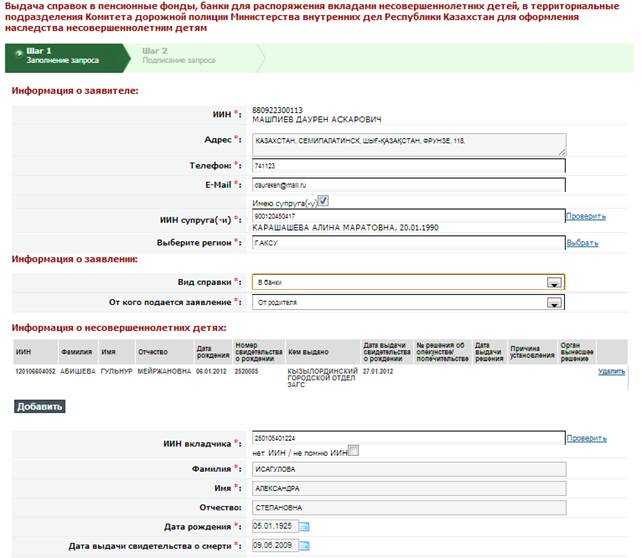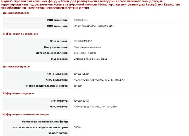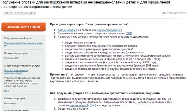 «Выдача справок в пенсионные фонды, банки для распоряжения вкладами несовершеннолетних детей, в территориальные подразделения Комитета дорожной полиции Министерства внутренних дел Республики Казахстан для оформления наследства несовершеннолетним детям»