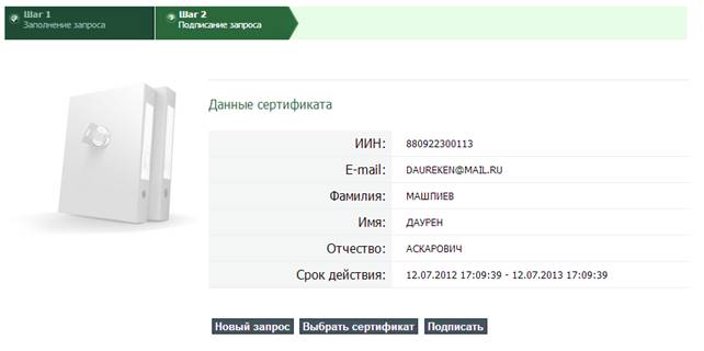 Рисунок 9 - Страница подписания запроса ЭЦП Пользователя