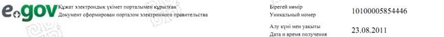 После подписания, запрос будет отправлен в систему местных исполнительных органов. После чего мы получаем «Поступившее заявление», где нужно согласно стандарту ждать результат оказания услуги в течении 5-ти рабочих дней. После чего нужно зайти в «Историю получения услуг» в личном кабинете и выбрать соответствующее заявление по номеру и перейти по ссылке. После чего открывается информация о статусе заявления (см. рис 10).