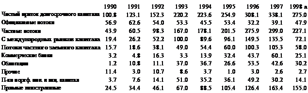 Чистый приток долгосрочного капитала в развивающиеся страны в 1990-1998 годах